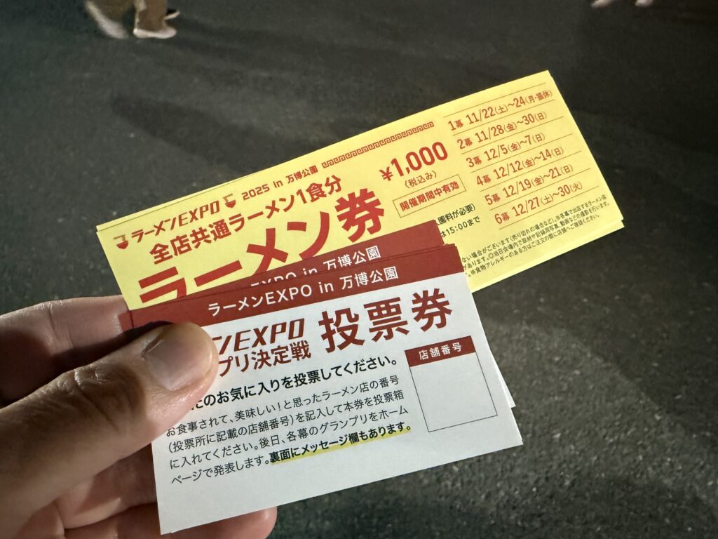 万博のイルミナイトがSNSで出てきたので行くことになり、たまたま同時開催していたラーメンエキスポもせっかくなので行ってみようということに。