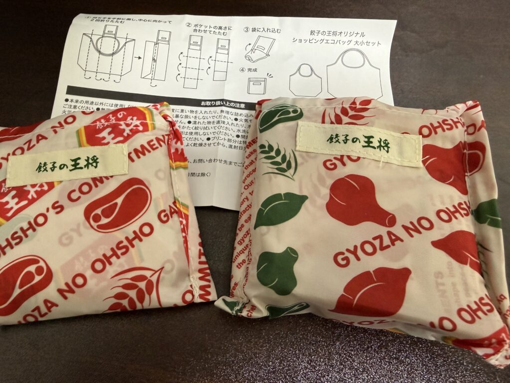 餃子の王将エコバッグをゲット 大小セットでサイズも使い分け便利